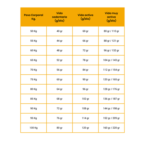 Tabla de proteína diaria por peso