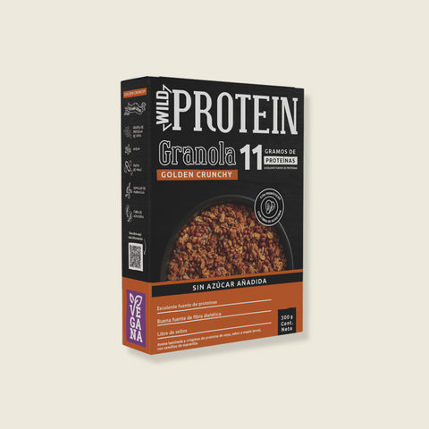 La Granola Wild Protein Golden Crunchy es el snack perfecto para mantenerte lleno de energía. Con 10 g de proteína por porción, es ideal para disfrutar como snack o en el desayuno. Además, al ser libre de sellos y de azúcar añadida, es una opción saludable y deliciosa.